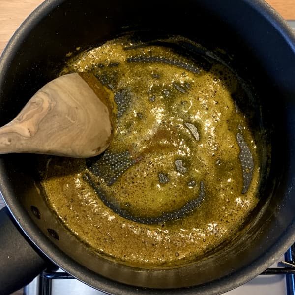 Gently heat your oil and butter in a medium cooking pot until the butter melts, then grind in your pepper along with the half tablespoon of fennel powder.