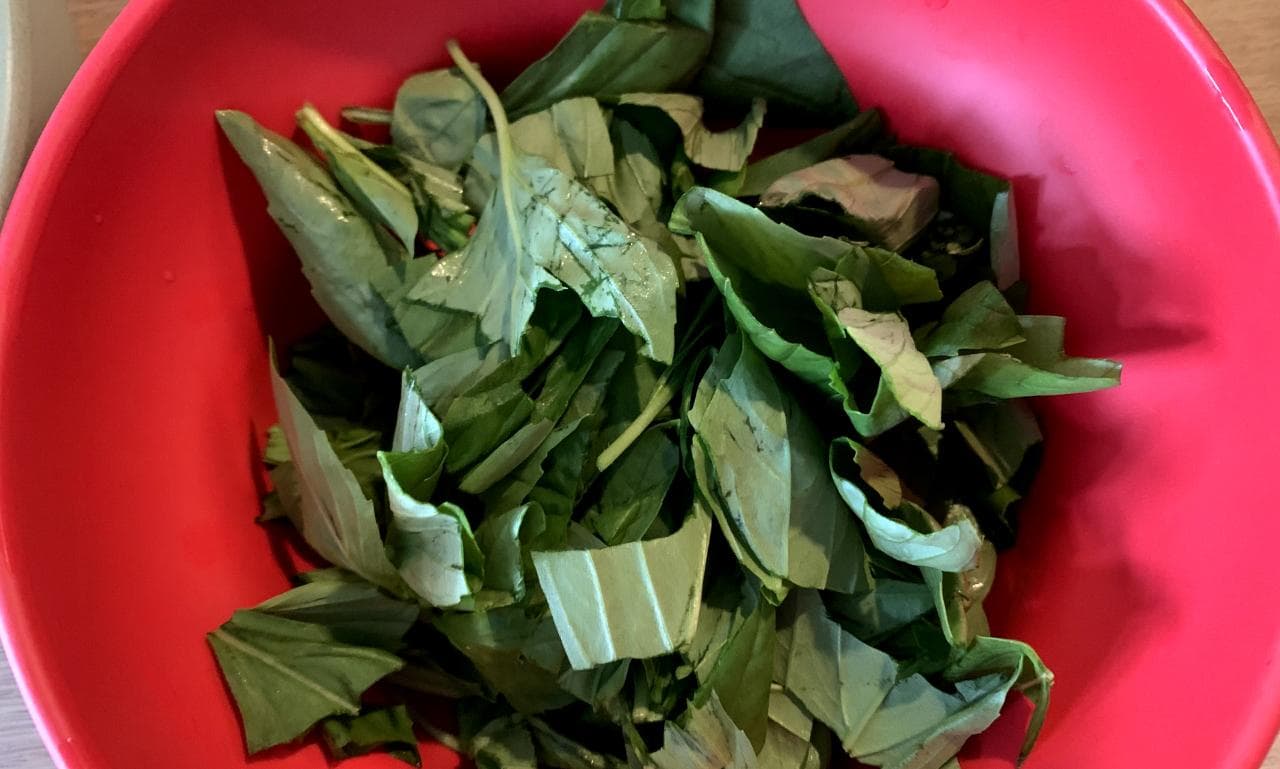 Turn the heat down to a gentle simmer and add your olives. Tear the basil roughly by hand, or chop with a sharp knife, and add that in too.