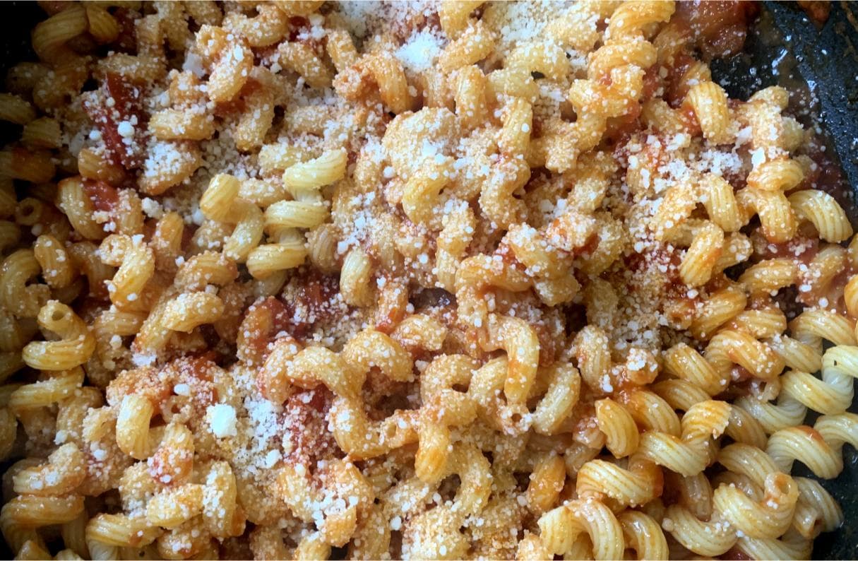Once it's done, stir in your pasta and top with parmigiano, grana or pecorino before serving. And that's that! A 20 minute pasta sauce that's sure to please even the pickiest eaters.